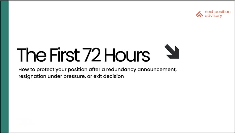 Reputation, references, deferred compensation, timing. This is a 90–120 day structured framework for leaving strategically, not just resigning and hoping for the best.