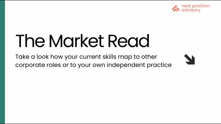 The Market Read translates your corporate experience into external market positioning, specific roles, independent routes, and ready-to-use copy.
