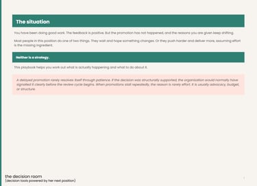 The Delayed Promotion Playbook explains how promotion decisions actually happen inside large organisations and how to test whether your promotion path is structurally real.
